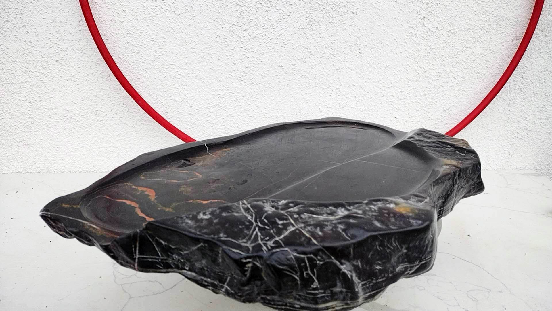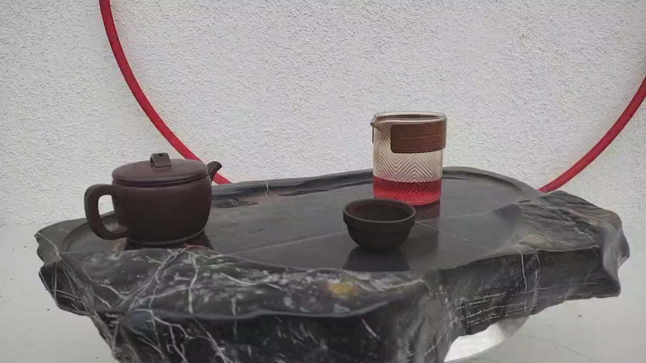 This exceptional bonsai container is hand-carved from a single, solid piece of genuine Lingbi stone – recognized as one of China's four most famous scholar rocks (四大名石之首). Sourced from Anhui province, Lingbi stone is celebrated for its dense, jade-like texture, deep jet-black color with subtle natural orange mineral veins, and ancient, wind-eroded patterns that resemble misty mountains, flowing rivers, and dramatic landscapes. Each piece is naturally unique – no two stones are alike.